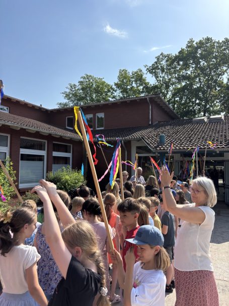 In den Ruhestand verabschiedeten wir außerdem zwei langjährige Kolleginnen: Frau Dagmar Beenen und Frau Vera Hills. Ihnen zu Ehren fand eine feierliche Verabschiedung in der Sporthalle statt – mit tollen Beiträgen, liebevollen Worten und dem traditionellen Spalierstehen. Wir danken den beiden herzlich für ihren großen Einsatz und wünschen ihnen einen erfüllten und glücklichen Ruhestand!