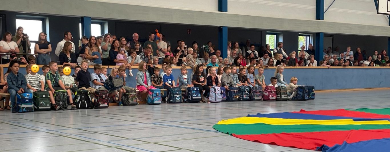 Am 16.08.2025 wurden die neuen Erstklässlerinnen und Erstklässler der Grundschule Hesel feierlich in der Kreissporthalle begrüßt. Die Klassen 1a (Frau Mindrup) und 1b (Frau Orth) starteten gemeinsam in ihren ersten Schultag.