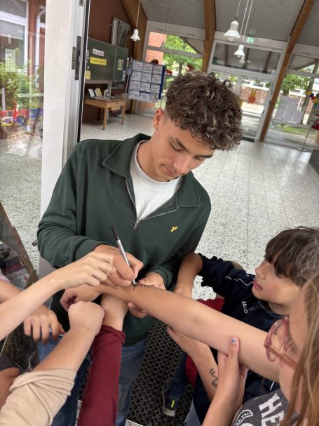 Beim Schulfest anlässlich „25 Jahre Förderverein“ hat unser Schülerrat durch das Waffelbacken stolze 284,50 € eingenommen. Der Betrag wurde an das Schutzengel-Huus „Michael“ in Remels gespendet.
