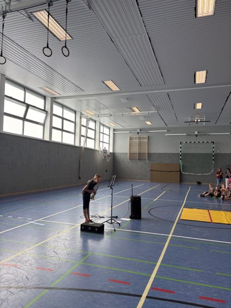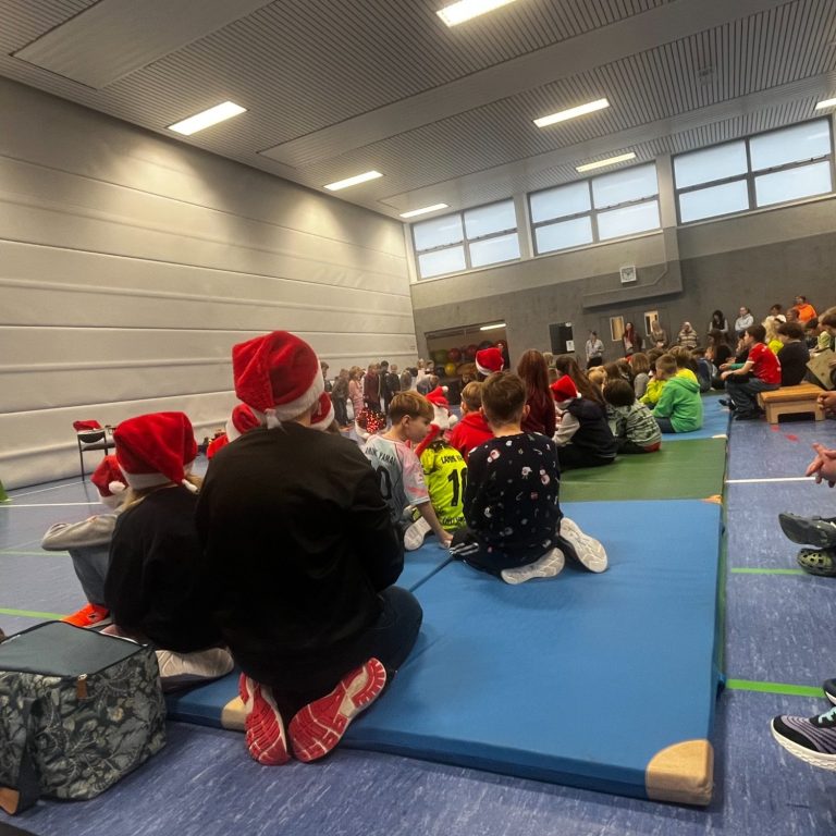 Dafür kamen alle Kinder und Lehrkräfte gemeinsam in der Sporthalle zusammen. Jede Klasse hatte einen eigenen Beitrag vorbereitet – es wurde gesungen 🎶, gerappt, Gedichte wurden vorgetragen 📖 und auch sportliche Darbietungen waren dabei 🤸♂️. Die abwechslungsreichen Auftritte sorgten für eine richtig schöne Stimmung und machten die Weihnachtsfeier zu einem gelungenen gemeinsamen Erlebnis.