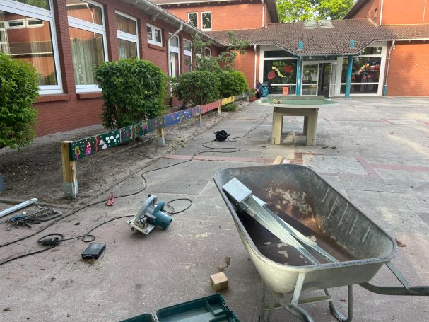 Ebenfalls neu: Der von Kindern und Helfern selbst gestaltete und aufgebaute Zaun schützt nun unsere Blumenbeete. Vielen Dank an alle Unterstützerinnen und Unterstützer – besonders an Gudi sowie Frau und Herrn Helmers – für eure tatkräftige Hilfe!