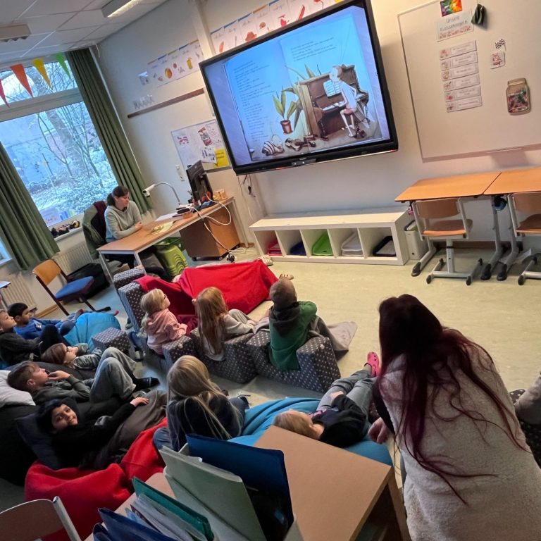 Die Kinder hatten große Freude daran, in drei aufeinanderfolgenden 20-minütigen Vorlesezeiten verschiedene Geschichten zu hören, die sie zuvor aus einem vielseitigen Angebot auswählen konnten. Viele Räume unserer Schule wurden passend zu den Geschichten liebevoll und thematisch gestaltet und sorgten für eine besondere Vorleseatmosphäre.